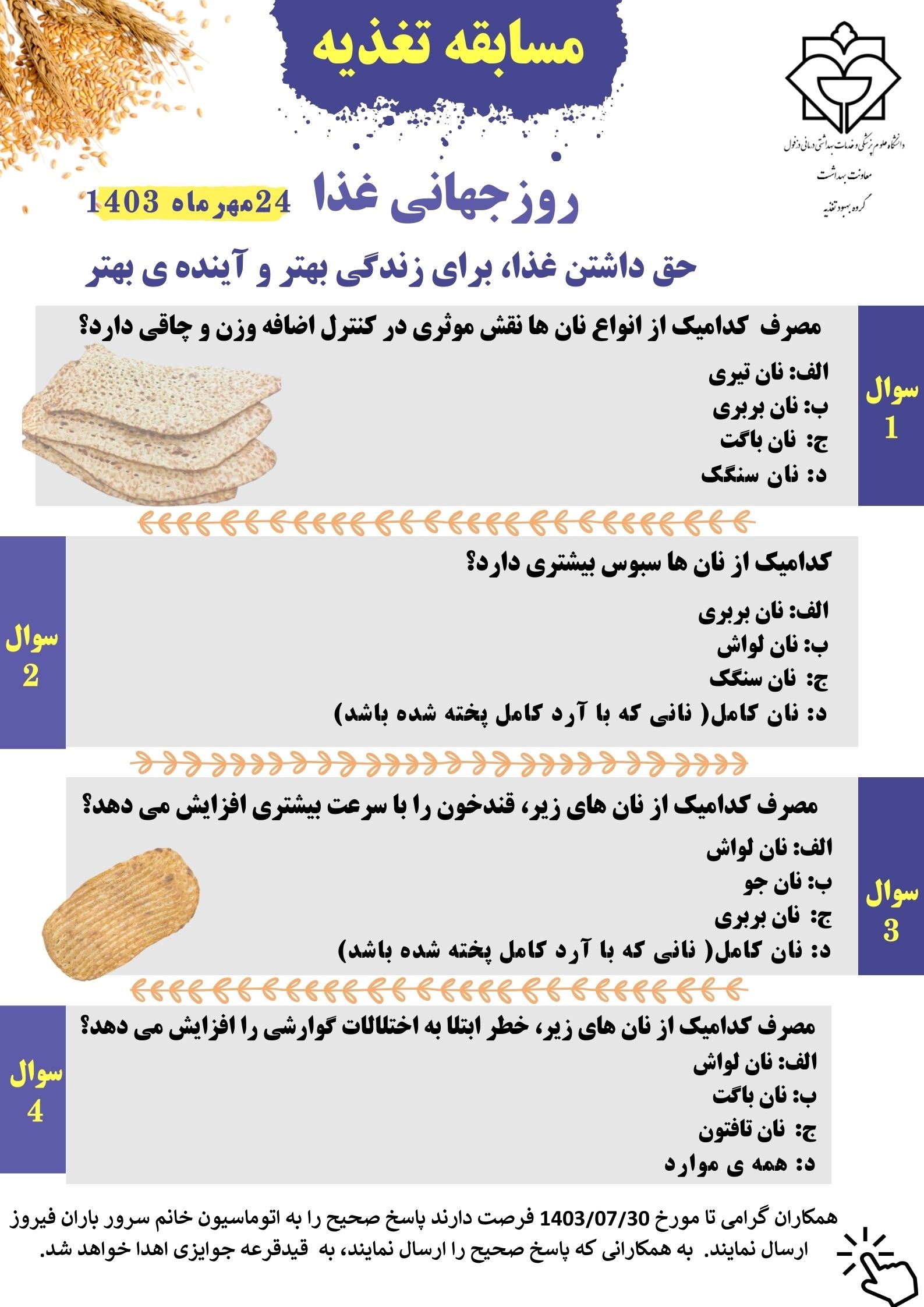 مسابقه ی روز جهانی غذا مسابقه ی روز جهانی غذا // - 14:42 - تعداد بازدید: 31 - کد خبر : 18118 - گروه خبری : اطلاعیه ها - تعداد نظرات : 0