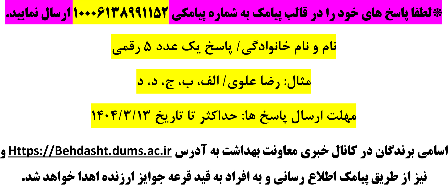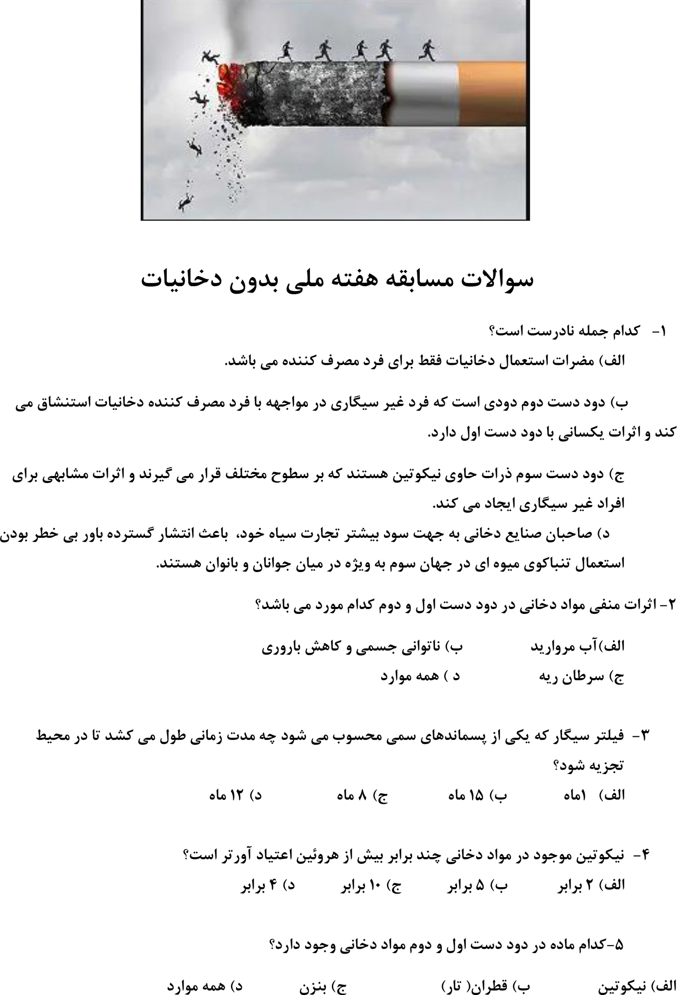 مسابقه ی پیامکی هفته ی ملی بدون دخانیات مسابقه ی پیامکی هفته ی ملی بدون دخانیات 1404/03/10 - 08:17 - تعداد بازدید: 24 - کد خبر : 18929 - گروه خبری : اطلاعیه ها - تعداد نظرات : 0 مسابقه هفته ملی بدون دخانیات