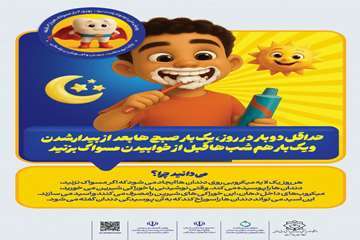 تعداد دفعات مسواک زدن در طول روز شعار هفته: دو تا دو یادت نره! روزی دو بار مسواک، هر بار دو دقیقه 1404/07/21 - 09:40 - تعداد بازدید: 17 - کد خبر : 19373 - گروه خبری : تصاویر - تعداد نظرات : 0