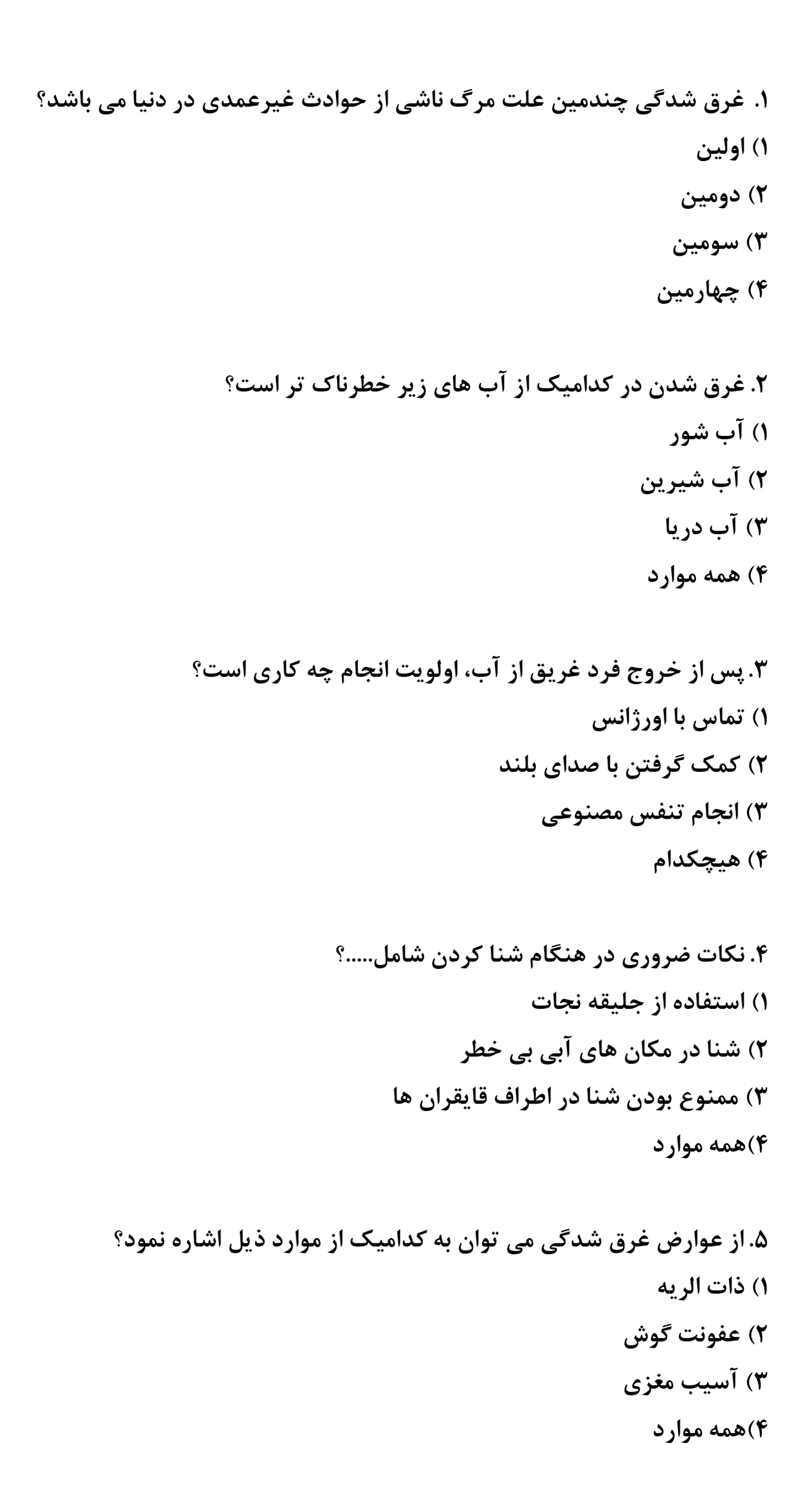 سوالات مسابقه ی کمپین پیشگیری از غرق شدگی